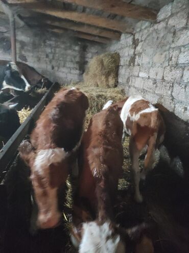 Satlıq mal-qaralar - 2 baş bala: biri al-qəhvəyi-ağ ləkəli, digəri qara rəngdə. - Qulaq birkaları mövcuddur. - Fermada saxlanılır, yemlənməyə və baxıma öyrəşdirilib. - Sağlam bədən quruluşu, düz a...