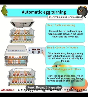 Qeyd: Çevirməni dayandırmaq üçün çevirmə kabelini ayırın. Poultry yumurtalarının müxtəlif növləri üçün uyğundur. Ağ korpus, 2 qatlı yerləşdirmə strukturu.....