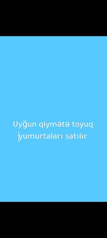 Məhsul: Toyuq yumurtaları Təsvir: - Gündəlik təzə yığılan, mətbəx və çörəkbişirmə üçün əlverişli toyuq yumurtaları. - Ailə istifadəsi, restoran və kafe üçün uyğun. - Zülalla zəngin, səhər yeməklər...