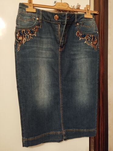 Açıq mavi rəngdə, dizden asagi cins etek qiymet razilasma ile❤️