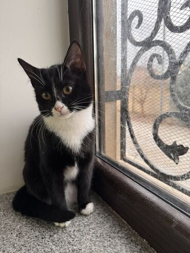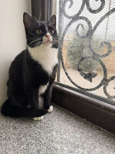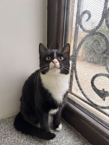 Ev pişiyi – tuxedo (qara-ağ) rəngli, qısa tüklü