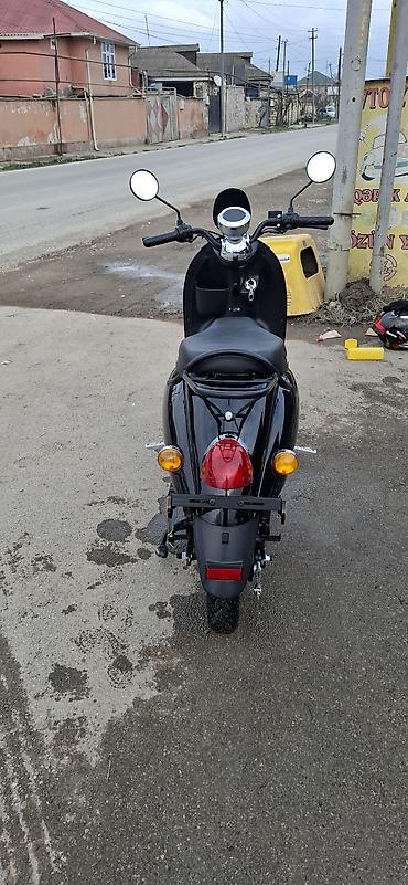 Şəhər içi hərəkət üçün praktik skuter. Xüsusiyyətlər: - Gövdə rəngi: qara - Qızılı rəngli disklər - Geniş, yumşaq iki nəfərlik oturacaq - Ön far və ön/yan dönmə işıqları - Mexaniki ön əyləc klapan...