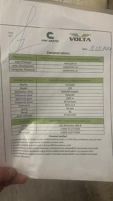 Şəhər içində rahat, səssiz və qənaətli hərəkət üçün praktik elektrik skuter axtaranlar üçün uyğundur. Model üzərində “VOLTA” və “VS2” nişanlaması mövcuddur.