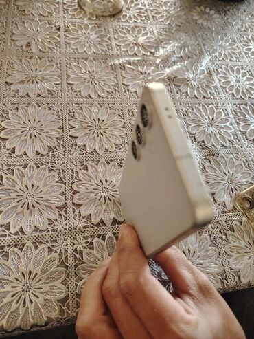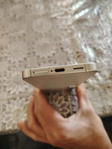 Məhsul: Smartfon (gümüş/ağ tonlarda, düz kənarlı metal çərçivə) Təsvir: - Korpus: Kənarları düz, alüminium görünümlü metal çərçivə; arxa panel açıq rəng (ağ/gümüş). - Portlar və səs: Aşağı hissədə...