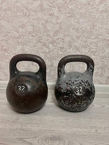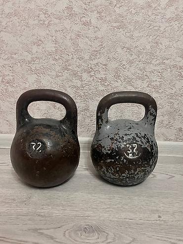 Dəmir giryalar və dumbell dəsti 2 ədəd girya biri 24 kq o biri 16 kq qanter 10 kq olmalıdır qiymət hamısına aiddir