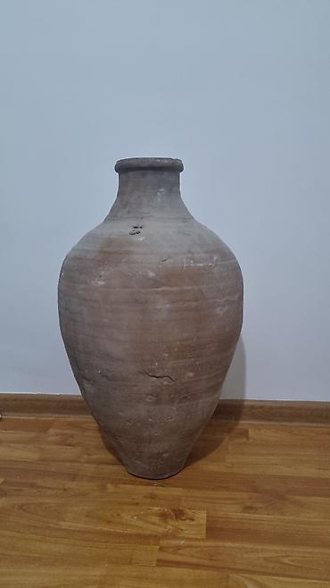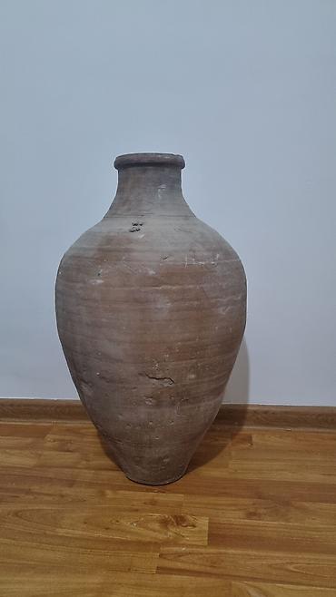 Təsviri: - Material: təbii gildən hazırlanmış 100 illik iri saxsı qab - Forma: amfora tipli – geniş kürəvi gövdə, dar boğaz, bir ədəd iri tutacaq və konik uclu dib - Rəng: açıq torpaq/bej tonları,...
