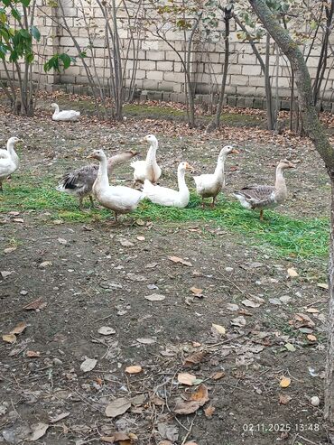 Yerli iri qazlar satilir 11 ededdir 4 erkey 7 dişi bu ilki qazlardir çatdırılma yoxdu qiymət 35 azn her cekide var Ünvan Şirvan - Növ: ev qazları, bir neçə fərqli rəngdə (ağ, ağ-boz və naxışlı) -...