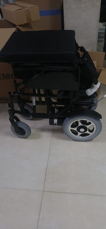 Elektrik təkərli kreslo - İdarəetmə: Sağ qol dayağında yerləşən joystick (həssas sürət və istiqamət nəzarəti) - Çərçivə: Yüngül, möhkəm alüminium ərintisi - Oturacaq və arxalıq: Yumşaq, nəfəsalan ...
