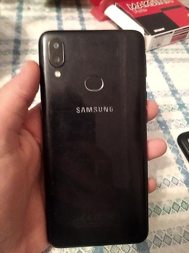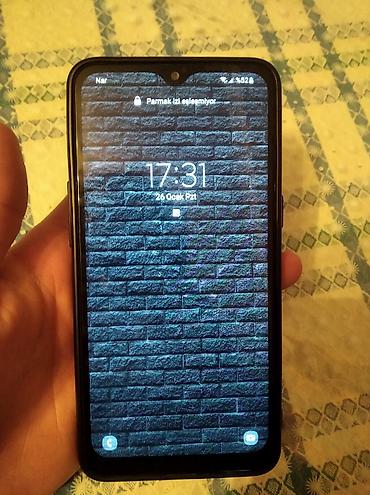 Samsung smartfon - Model: Samsung (arxa hissədə barmaq izi skaneri, ikili arxa kamera və LED işıq, mavi rəngli korpus) - Ekran: Tam ekran ön panel, yuxarıda mərkəzdə kamera nöqtəsi - Kamera: 2 arx...