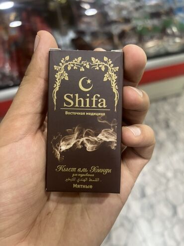 Qutuların üzərində: “Shifa – Восточная медицина”, “Кыст аль Хинди для окуривания / القسط الهندي للتبخير”, “Мятные” (nanəli variantlarda) yazıları qeyd olunub.