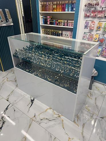 Mağaza avadanlıqları satılır: - Yazı/iş masası – 50 AZN. Aşağı hissəsində 1 çekmecə və qapalı dolab bölməsi var, iş üçün geniş üst səth. - Bujuteriya vitrini – 200 AZN. Divara bərkidilən panel və ...