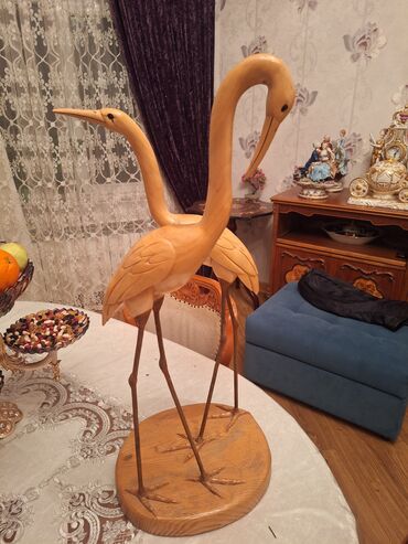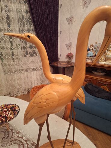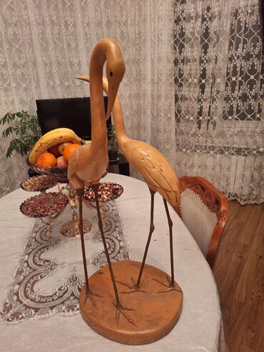 1 metre yaxin demirden ayaqlari olan ozu agacdan olan boyuk flamingo fiqur