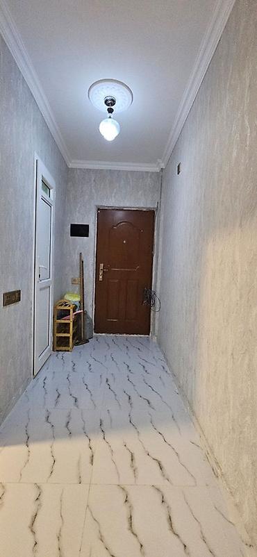 - Giriş: işıqlandırmalı tavan rozetkası, mərmər naxışlı kafel döşəmə, dəmir giriş qapısı.