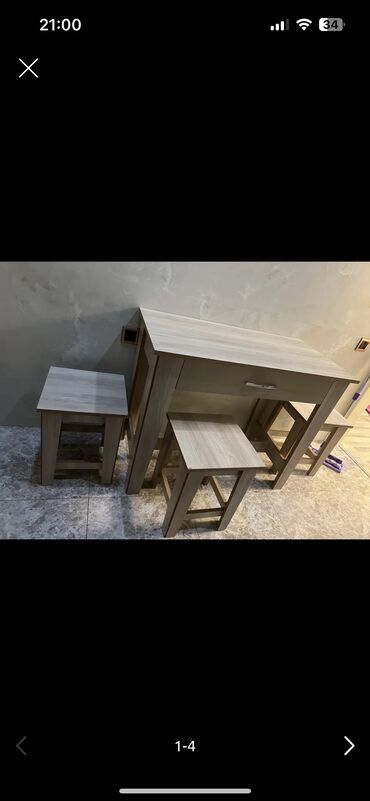 Внимание:мошенникам не беспокоить 100*50 sm; stol ve 3 taburetka . Ön terefi cekmeceli. Qirigi yoxdu. Material Turkiye laminati Kastamono . Unvan AAAF park.