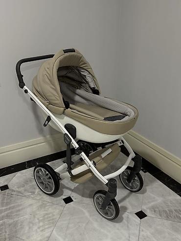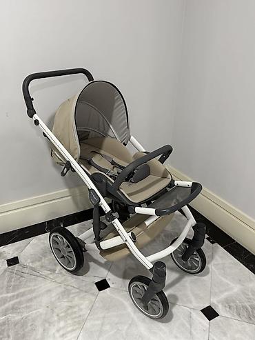 Anex E / Type uşaq arabası - Rəng: bej (şassi açıq metalik) - 2-də-1 komplekt: beşik tipli lyulka və oturacaq bloku - Tənzimlənən ayaqaltı və arxalıq, tam uzanma rejimi - Böyük kapot (günəşdən qor...