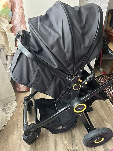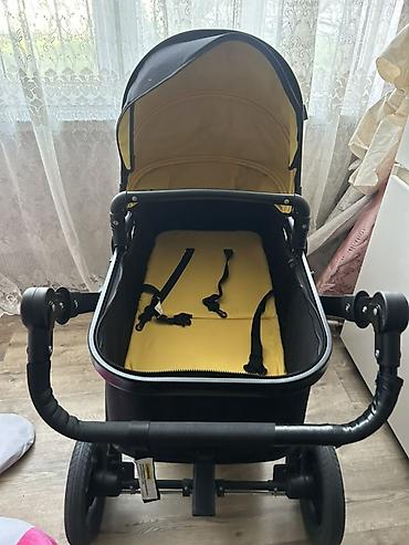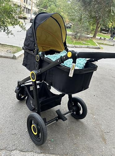 Uşaq arabası – 2‑də 1 (körpə beşiyi və oturacaq bloku. Rəng: qara. - Modul: çıxarılan beşik tipli lyulka və çevrilə bilən/oturtma modulu - Təkərlər: iri arxa təkərlər, fırlanan ön təkərlər; arxa o...