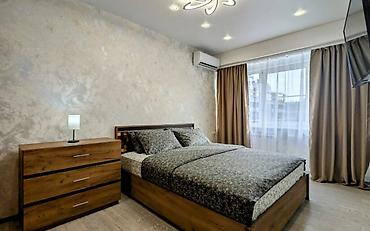 Geniş və işıqlı bir otaqlı günlük kirayə mənzil. Modern dizaynlı yataq otağı və ayrıca sanitar qovşaqdan ibarətdir. Xüsusiyyətlər: - İki nəfərlik rahat çarpayı, təmiz yataq dəsti və dekorativ yast...
