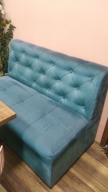 Mavi rəngli restoran/kafe divanları - Material: yumşaq məxməri tipli parça üzlük, alt hissə dəri/plastik qoruyucu bant, taxta ayaqlar - Rəng: tünd mavi - Arxa söykənəcək: yüksək, düz xəttli dizayn...