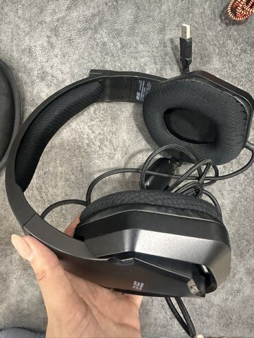 - 2E naqilli oyun qulaqlığı. USB qoşulma, yumşaq qulaq yastıqları, geniş yastıqlı taç, qatlanan mikrofon (korpusda gizlənən).