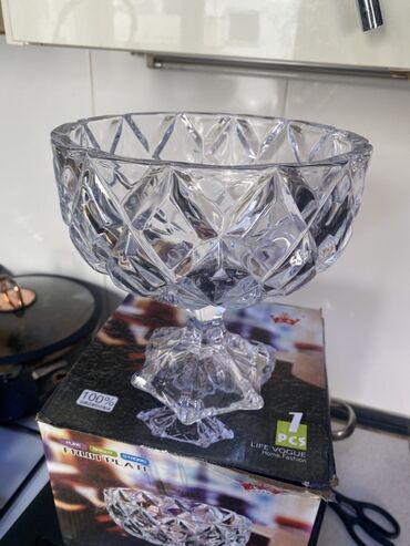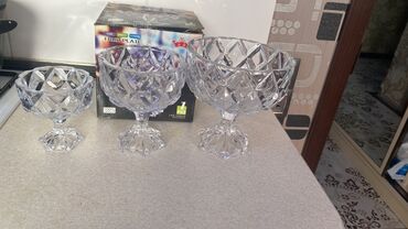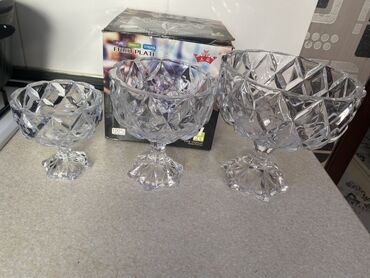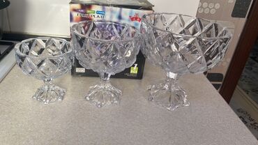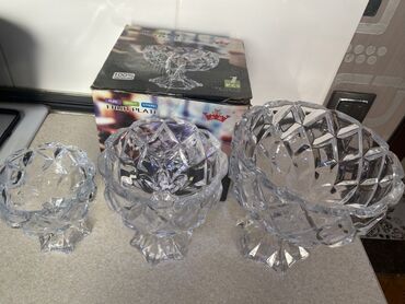 Şüşə konfet qablari/ 3olculu.heresinnen 2eded var.Cem olaraq 6ededdir.her biri yenidir. Qiymeti hamisi birge 50azn