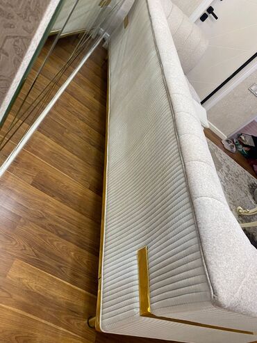 - Konstruksiya: Metal qızılı karkas və dekorativ zolaqlar; incə, yerdən hündür ayaqlar hava dövranını artırır və təmizliyi asanlaşdırır
