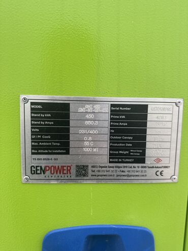 528kw-660kva Genpower Istehsalci olke:Turkiye Mator:Inter Zemanet:3il