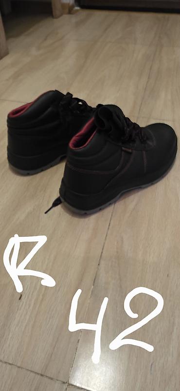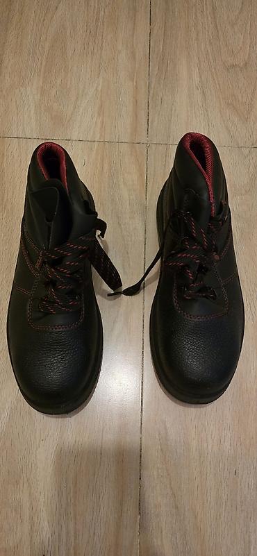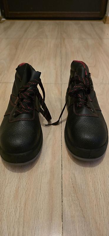 İş üçün təhlükəsizlik ayaqqabısı - Model: bağcıqlı, bileyə qədər - Rəng: qara, qırmızı detallar və ağ tikişlər - Material: qalın, teksturalı süni/deri üstlük, möhkəm kauçuk altlıq - Burun hissəsi ...