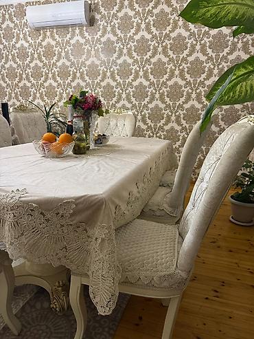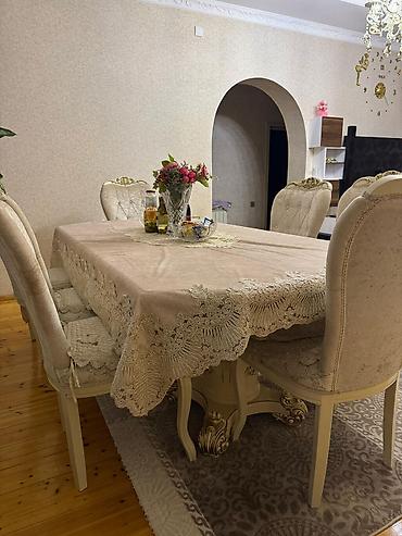 - Üstünlüklər: Rahat oturuş, zərif dekor, geniş masa səthi, eyni üslubda 8 ədəd stul komplekti