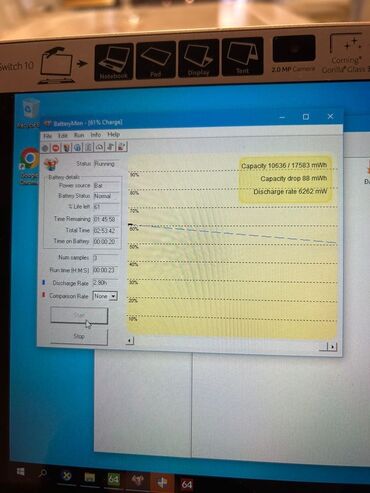 - Bateria: BatteryMon göstəricisi – ümumi tutum 17583 mWh, hazırkı 10636 mWh, boşalma sürəti təxmini 6262 mW (ekrandakı məlumatlar)