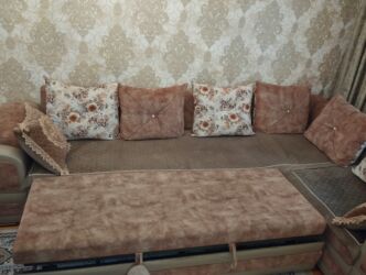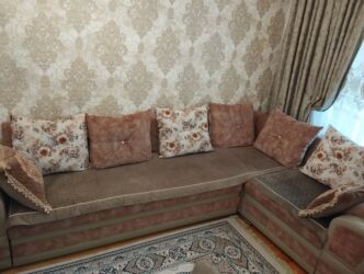 - Yastıqlar: Çoxsaylı iri dekorativ yastıqlar daxildir; çiçək naxışlı və tək rəng kombinləri.