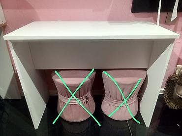 Qeyd: Şəkildə görünən çəhrayı puff/oturacaqlar daxil deyil. Söhbət yalnız masadan gedir.