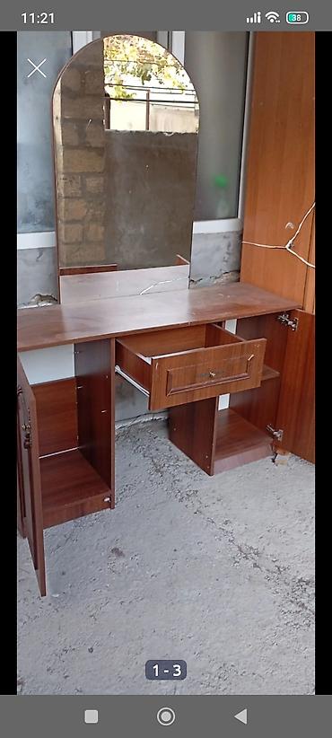 Aşaqı yeri yoxdu tecili satılır🆘🆘🆘 Vizaj masası – güzgülü və rəfli - Material: tünd qəhvəyi ağac teksturalı laminat/LDSP - Geniş iş səthi – gündəlik makiyaj və saç üçün rahat - Böyük düzbuc...