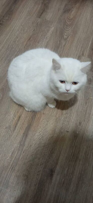 Şotland qıvrım qulaqlı (Scottish Fold) balaca pişik - Rəng: qar-bəyaz, uzun və yumşaq tüklü - Qulaqlar: tipik qıvrım/katlanmış - Gözlər: böyük, dəyirmi, açıq rəngli - Üz quruluşu: iri yanaqlar, qı...