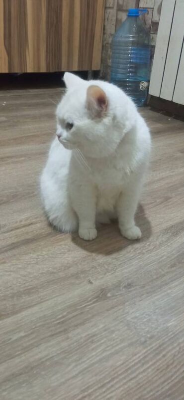 Ağ rəngli ev pişiyi – heteroxrom gözlü - Cins: ev pişiyi (qısa tüklü) - Rəng: tam ağ, parlaq və sıx tüklər - Gözlər: heteroxromiya – bir göz mavi, digər göz kəhrəba - Qulaq və pəncələr: simmetrik,...