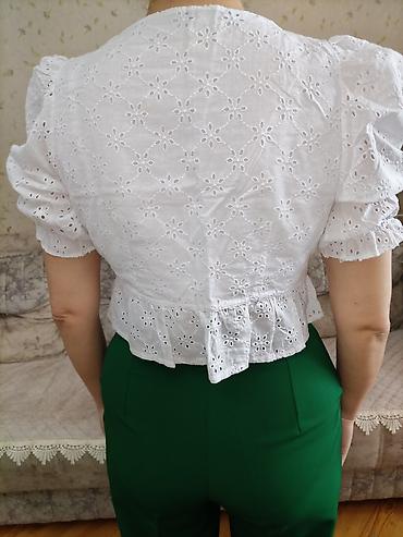 10azn s-l az geyılıb teze kımıdı 35manata alınb Ağ rəngli qadın bluzası - Dizayn: Açıq çiyinli (off-shoulder) kəsim, yuxarı hissədə elastik rezin, ön hissədə büzgülü və qat-qat volan detalları. ...