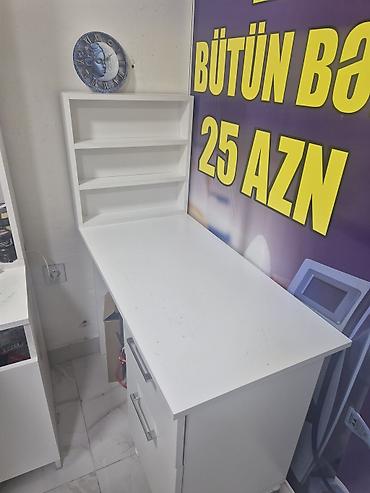 Ağ rəngdə funksional iş masası - Material: laminat/MDFlam ağ örtüklü