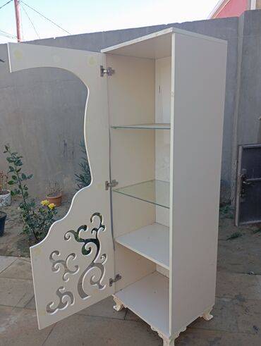 - Material: MDF/Laminate korpus, şüşə rəflər