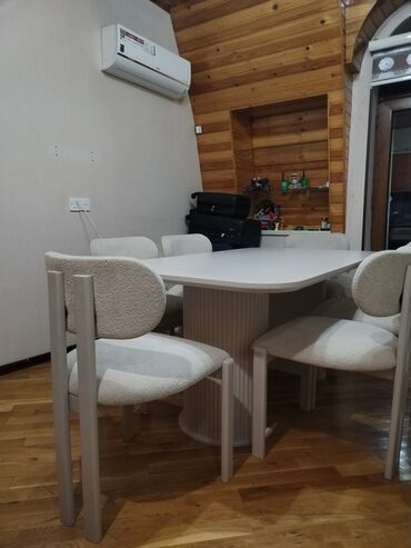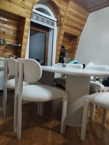 Ağ rəngli yemək dəsti – masa və 6 ədəd stul