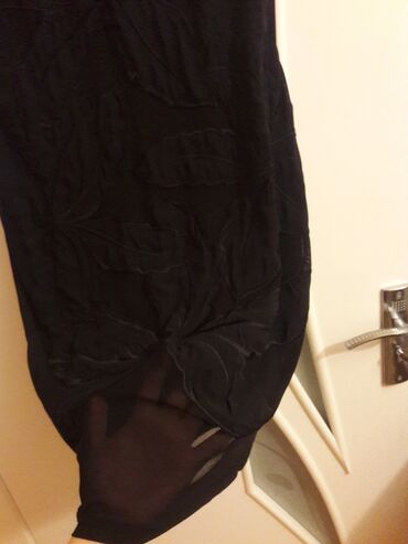 Qara rəngli, ağımtıl xırda xallı qadın donu. - Uzunqol, yüngül atlas/parça görünüşlü material - Sinə hissəsində büzgü detallı kvadrat-yarı dəyirmi dekolte - Bel xəttində zərif qara krujeva (meşə...