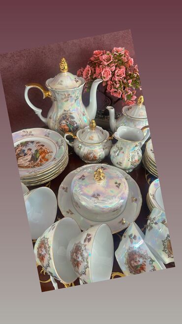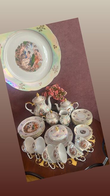Fortuna çay servizi ,6 person,24 predmeti ,50 ilin , bir boşqabında çat var ,şəkildə göstərilir.Başqa heç bir qüsür yoxdur. 210 man . Satıcı sözünün üstünə vurub bütün elanlara baxa bilərsiz.