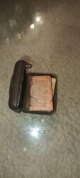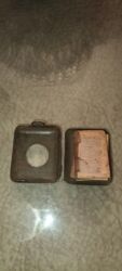 Ölçü (təxmini): kibrit qutusu ölçüsündən kiçik, kvadrat formalı. Material: metal korpus, şüşə pəncərə, kağız səhifələr. Vintage/antik toplayanlar üçün maraqlı nümunə.