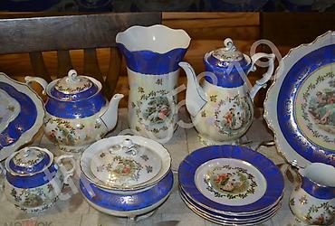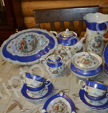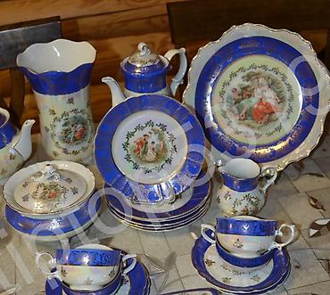 Qab-qacaq və dekor dəsti - Klassik üslublu şüşə-dekor komplekti: müxtəlif ölçülərdə bəzək kupaları və qablar, qızılı rəngli metal əsaslı, relyefli şüşə gövdə, dekorativ emblemli. Süfrə və konsol ü...