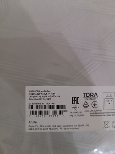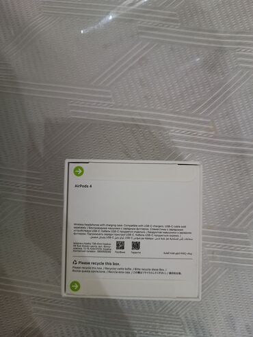 - Qutunun üzərində “AirPods 4” qeyd olunub; şəkillərdə ağ rəngli dizayn görünür