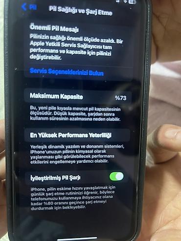 - Batareya məlumatı ekranda: Maksimum tutum 73% (Pil Sağlamlığı bölməsinin şəkli əlavə edilib)