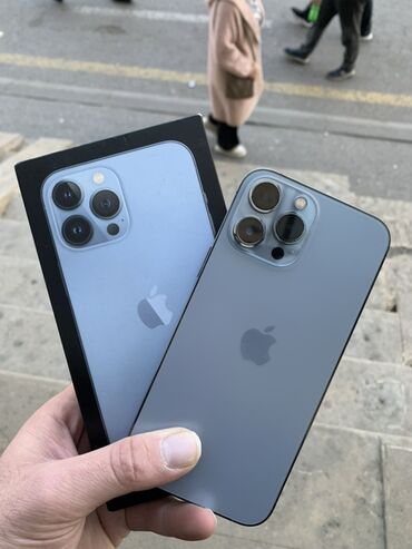 IPhone 13 Pro max– Sierra Blue Xüsusiyyətlər: - Ekran: 6.1" Super Retina XDR OLED, ProMotion 120 Hz - Çip: A15 Bionic, 5‑nüvəli GPU - Yaddaş: (şəkillərdə göstərilən model iPhone 13 Pro max daxil y...