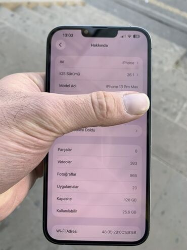 IPhone 13 Pro Max, 128 GB - Rəng: qrafit (paslanmayan polad kənarlar, şüşə arxa) - Ekran: 6.1" Super Retina XDR, Face ID - Yaddaş: 128 GB (mövcud boş yer ekranda: ~102 GB) - Kamera sistemi: üçlü a...