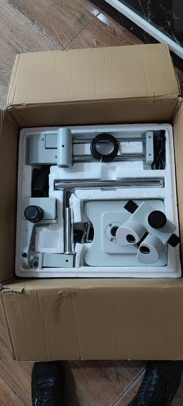 Avadanlıq yeni alınıb və heç bir dəfə də olsun qutusundan çıxarılıb istifadə edilməyib. Alan eləbilsin təzə mikroskop alır. Hər detalı yerindədi. Yiyəsi ölkədən gedib deyə satır. Axırıncı şəkildəki linza da üstündə satılır (0.7 X) əlavə 40 manata istəsəyən olsa aşağı da eləmək olar. Onu ayrıca 40-50 manata satıllar. Bu işə yeni başlayacaq adam üçün ideal avadanlıqdı.