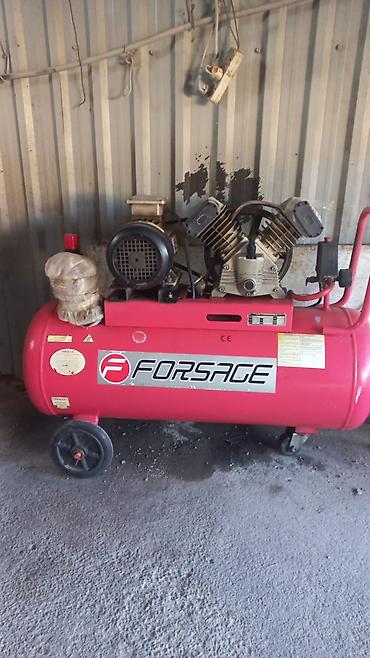 - FORSAGE hava kompressoru: Böyük qırmızı qəbul çəni, V-tip silindr qovşağı, təzyiq göstəriciləri, təkərli şassi. Pnevmo-alətlərin qidalanması, su püskürtmə tabancası və digər avtoyuma ehtiyacları üçün.