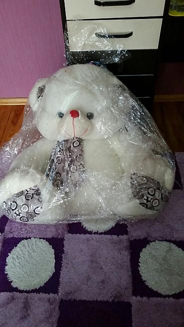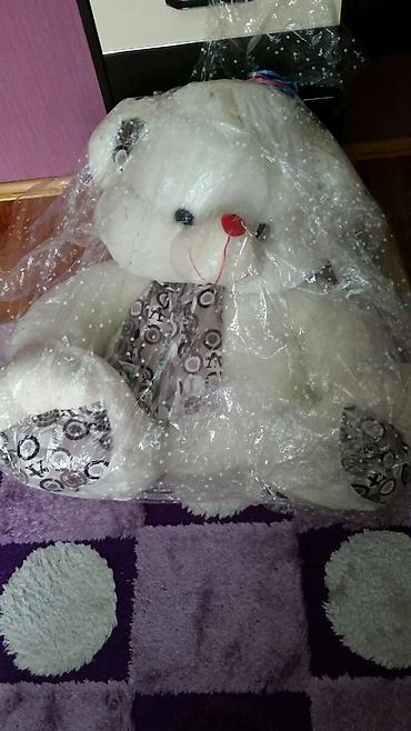 Böyük ölçülü plyuş ayı oyuncaq - Rəng: krem-ağ - Material: yumşaq, tüklü plyuş; doldurucu həcmlidir, forması doludur - Dizayn: iri baş və pəncələr, pəncələrdə qırmızı izlər; boynunda qırmızı naxış...