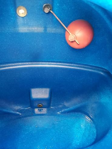 - Material: qalın divarlı plastik (polietilen), xaricdən ağ, iç hissə mavi rəngli örtüklə
